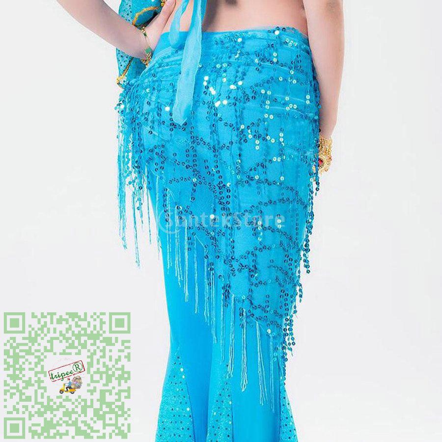 100 本物 ノーブランド 品 タッセル 女性 ベリーダンス スパンコール 三角 ヒップ スカーフ 全9色 ブルー Cisama Sc Gov Br